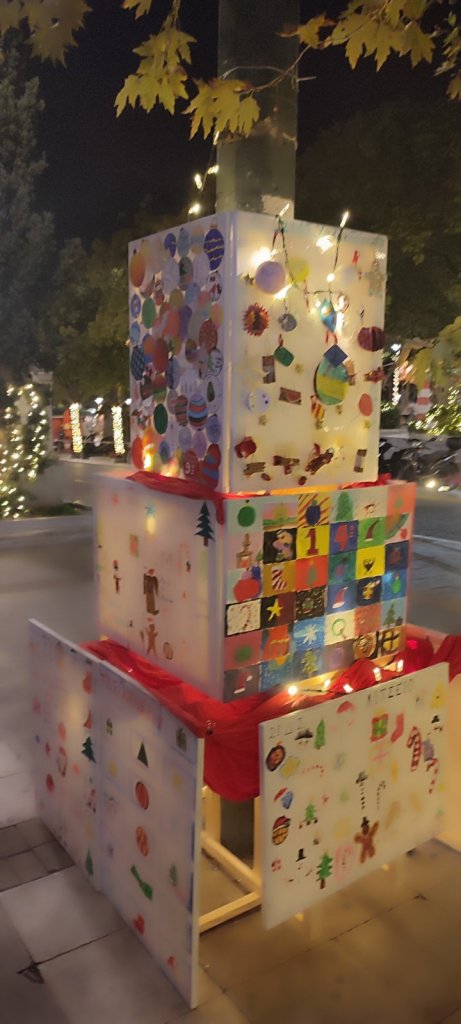 Οι μαθητές της ΣΤ τάξης των Δημοτικών Σχολείων του Χαλανδρίου, φιλοτέχνησαν σε καμβάδες χριστουγεννιάτικα στολίδια και δημιούργησαν ένα πολύχρωμο Χριστουγεννιάτικο δέντρο στην πλατεία της πόλης μας. Μια δράση που έγινε για πρώτη φορά! Ένα δέντρο φιλίας, συνεργασίας και ελπίδας, ζωγραφισμένο με φως και αγάπη! Έτσι, με τη στήριξη της Ένωσης Συλλόγου Γονέων, μαθητές, εκπαιδευτικοί και γονείς μεταδίδουν, με τον καλύτερο τρόπο, το μήνυμα των Χριστουγέννων!